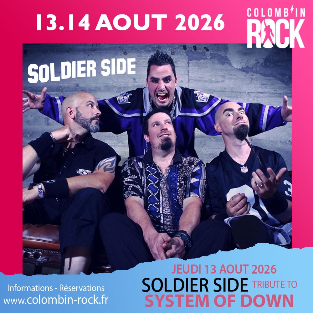 Soldier Side est un groupe tribute français dédié à reproduire fidèlement la musique du groupe américain System Of A Down, un des groupes majeurs et cultes du nu metal de ces 20 dernières années. Leur répertoire couvre l’intégralité de la carrière de System Of A Down, des premiers morceaux emblématiques jusqu’aux albums cultes comme « Toxicity », « Hypnotize » et « Mezmerize ». Ils restituent avec énergie et passion l’esprit et la folie du groupe original, mêlant riffs puissants, passages groove, chant mélodique à des influences orientales, fidèles aux origines arméniennes de System Of A Down.